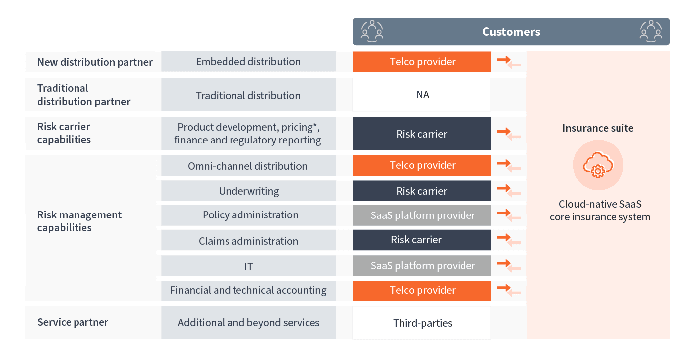 Figure 1: Set up of an embedded insurance proposition for telcos. The shown setup is only one option out of many possible value chain splits.